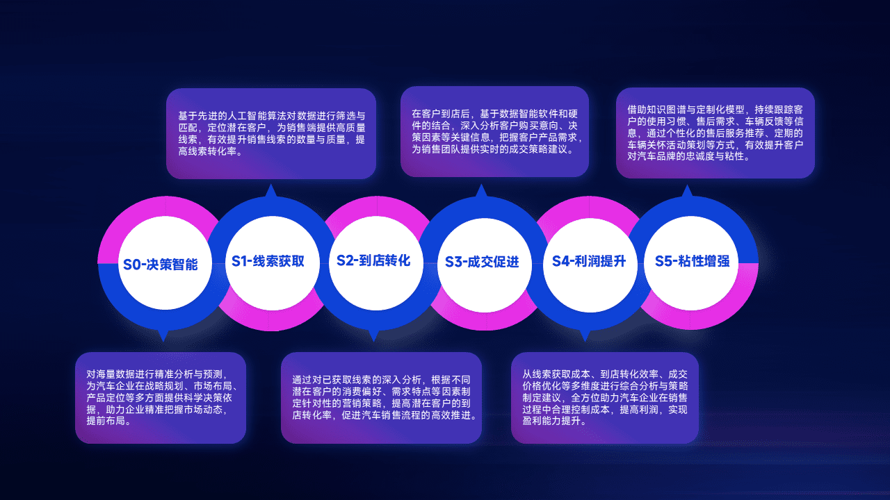 通过拓宽潜在客户来源、、优化线索分配并提高到店转化率,,以增强销售效率。。。。同时,,,,利用线索数据不断优化分析模型,,有效提升转化率,,,,扩大营销影响力。。。。